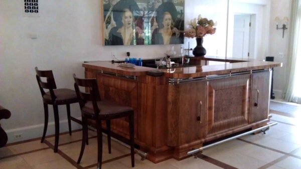 This handcrafted kitchen bar island was designed as a freestanding furniture-style centerpiece within the kitchen. Built from solid wood using fine woodworking techniques, the bar integrates seating and service functionality while maintaining clean architectural lines. The piece balances visual presence with everyday usability, offering integrated storage and a durable work surface suited for both casual use and entertaining.